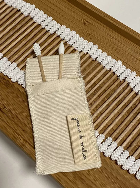 Duo coton-tige et applicateur beauté réutilisables avec étui en coton bio