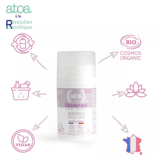 Déodorant Bio Nénuphar ou Aloe vera ou Fleur d'oranger - COSMOS ORGANIC - 50ml - RECHARGEABLE