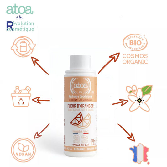 Recharge déodorant bio 100 ml – COSMOS Organic – 3 parfums au choix